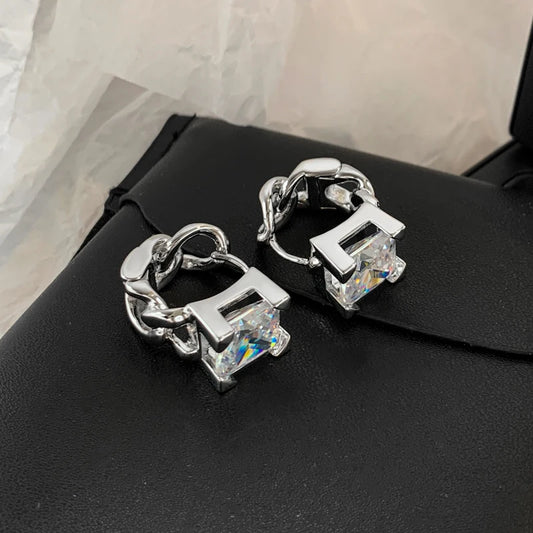 Brass Clear Crystal Stud Earrings Women Jewelry Punk Party T Show Gown Runway Korean Japan INS