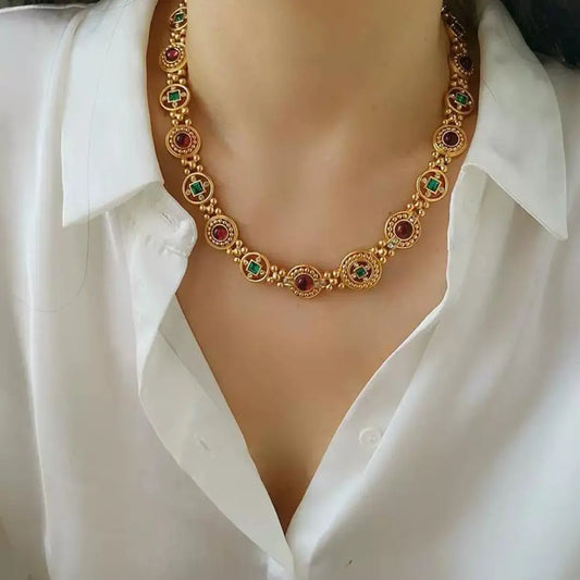 Brass Colorful Beads Rhinestoned Chunky Choker Necklace Women Jewelry Punk Designer Runway Rare Gown Boho Japan Korean