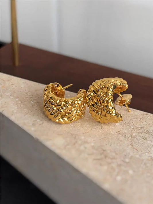 Brass With 18K Gold Braide CC Hoop Earrings Women Jewelry Punk Party T Show Gown Runway Korean Japan INS