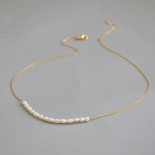 Titanium With 18K Gold Beads Chian Real Pearl Choker Necklace Designer T Show Runway Gown Rare INS Japan Korean Boho Top