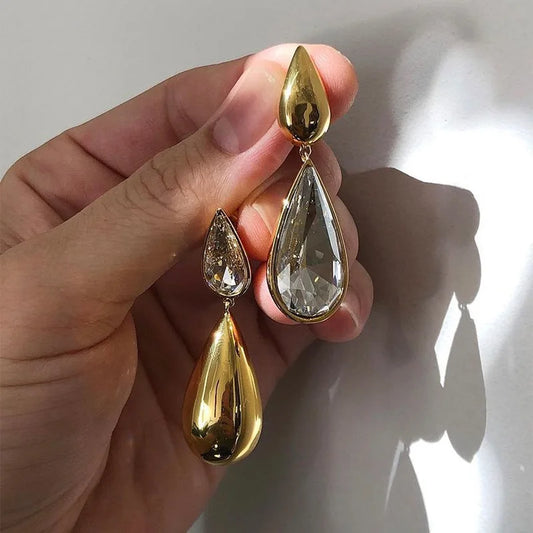 Brass With 18K Gold Zirconia Water Drop Earrings Women Jewelry Party T Show Gown Punk Gothic Top Runway Korean Japan