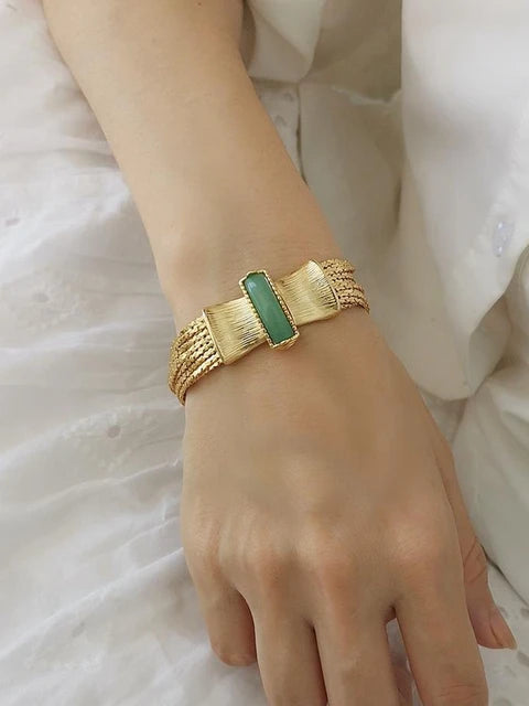 Brass Statement Chunky Colorful Retro Beads Bracelet Women Jewelry Designer T Show Runway Gown Rare INS Japan Korean Trendy