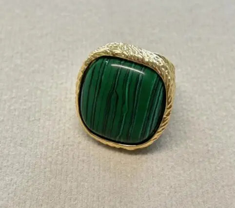 Brass Twist Chain Natural Stone Square Pendant Necklace Women Jewelry Designer T Show Runway Gown Rare INS Japan Korean Trendy