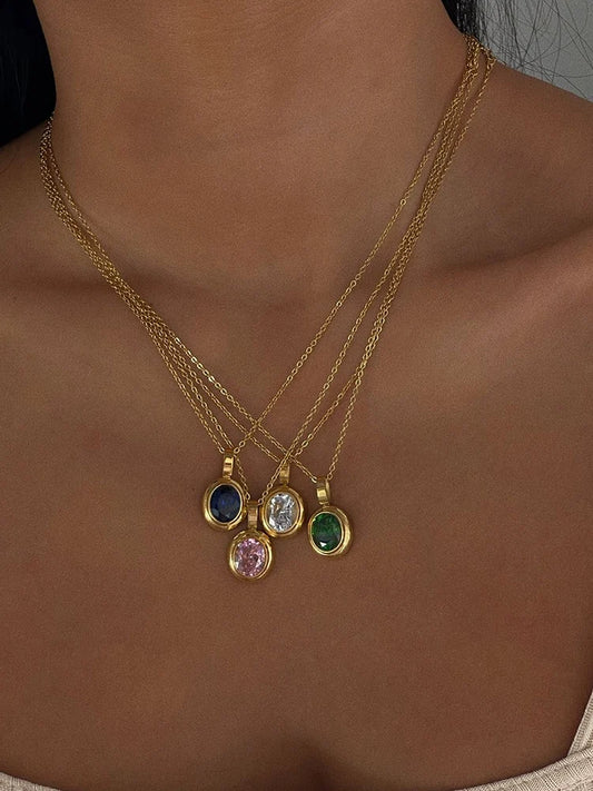 Titanium With 18K Gold Color Crystal Necklace Stainless Steel Jewelry Punk Party T Show Runway Designer Club Japan Korean